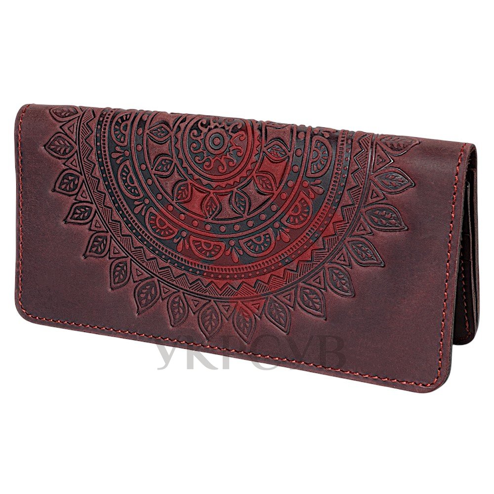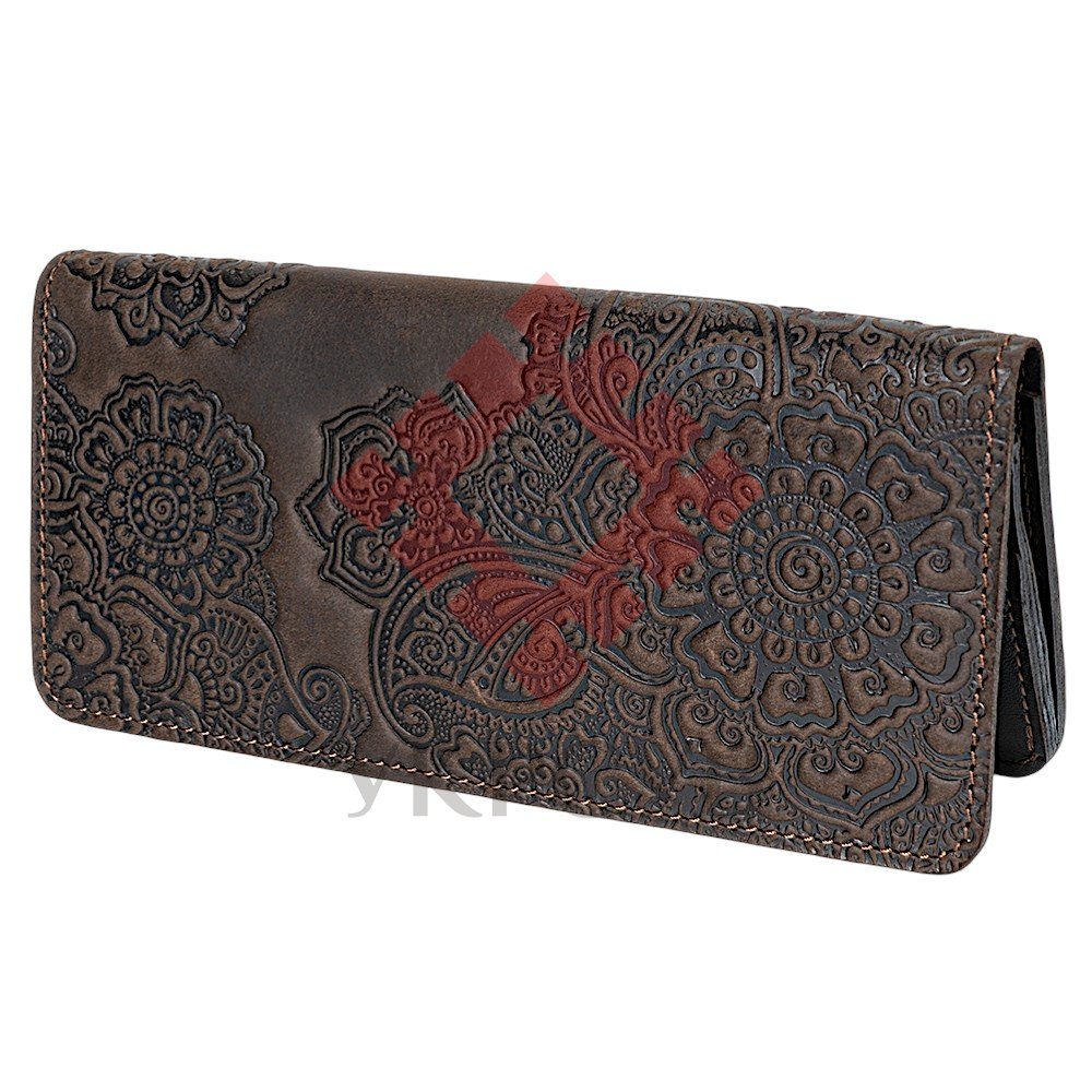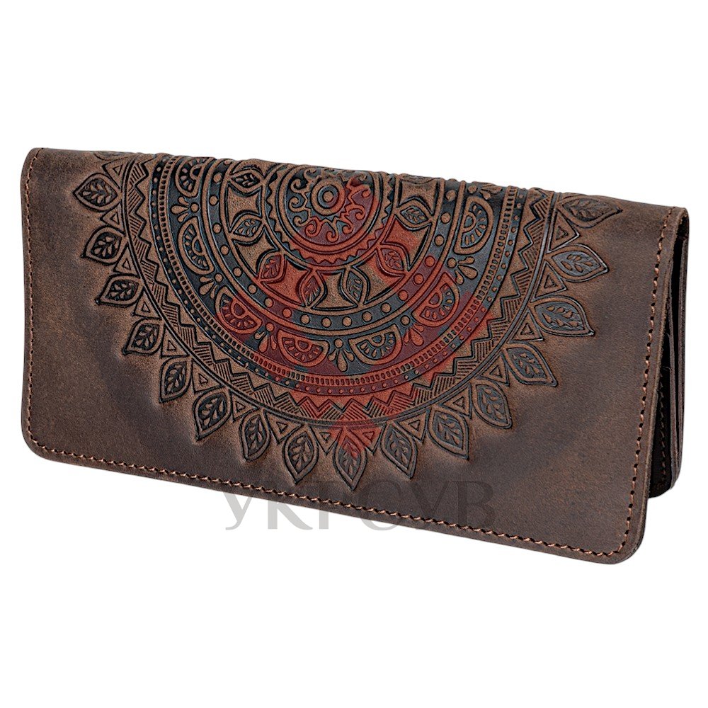 Гаманець довгий "Тризуб - калина", темно-коричневий