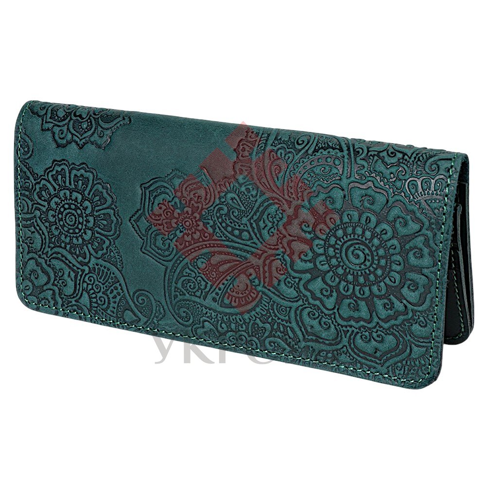 Гаманець довгий "Тризуб - калина", бірюзовий