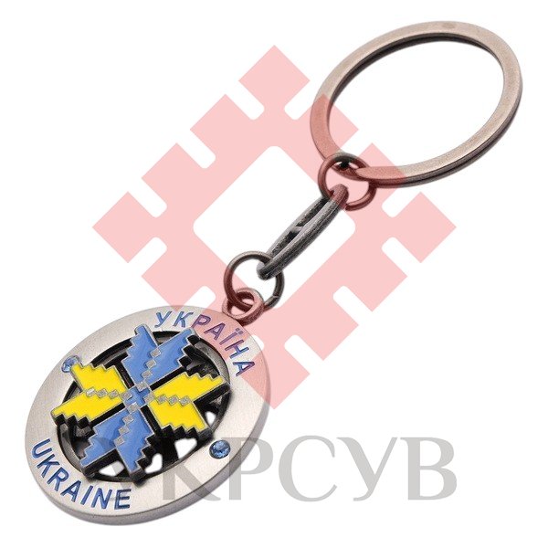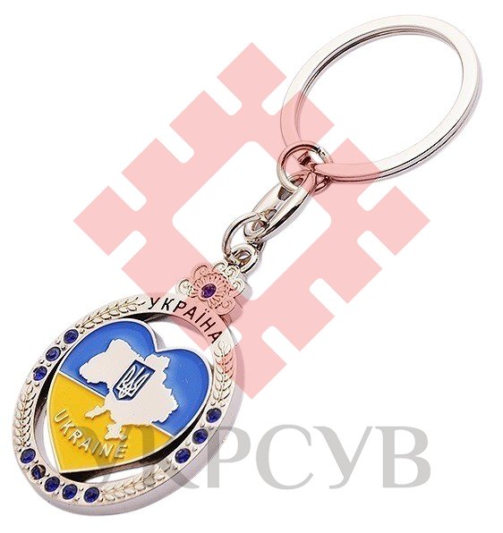 Брелок металевий – Серце з картою України в колі (стрази синьо-жовті)