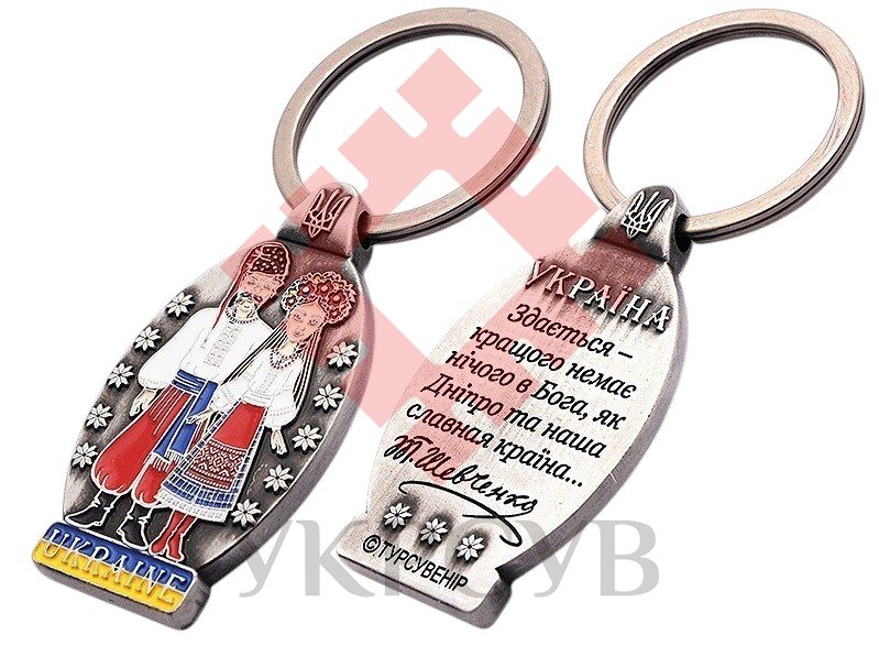 Брелок металевий – Парочка "Ukraine" (срібло)