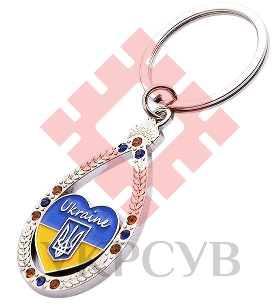 Брелок металевий – Серце з гербом (крапля, стрази синьо-жовті)