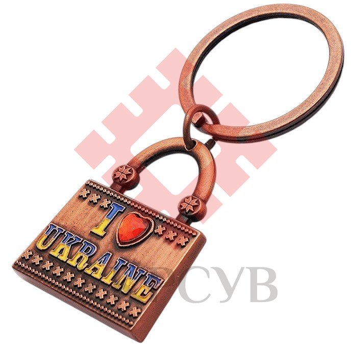 Брелок металевий – Сумка "I love Ukraine" (бронза)