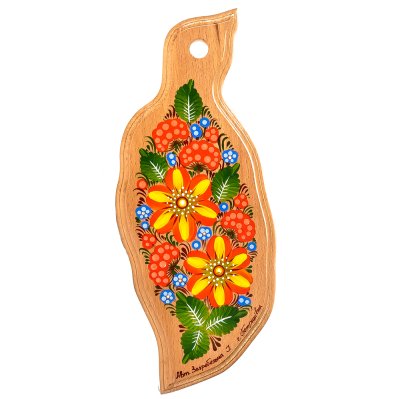 Дошка обробна з петриківським розписом. Зворотний бік робоча.
