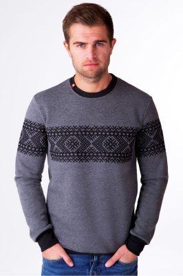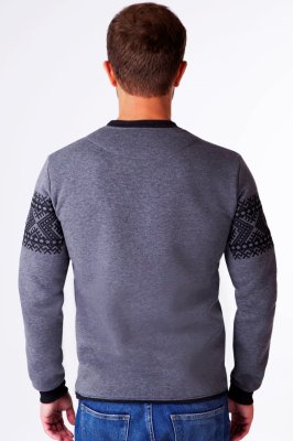 Категорія: Світшоти Світшот темно сірого кольору з вишивкою на грудях та рукавах. Вишивка хрестиком чорними нитками. Український вишитий візерунок часів Київської Русі.