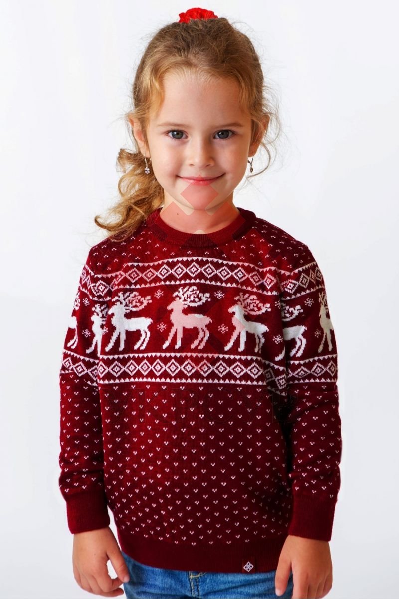 Свитер детский Фолк мода - Рождественские олени (КН-102) (18435)