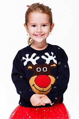 Категорія: Светри В'язаний светр з оленем — найактуальніший зимовий одяг в Україні та за кордоном. Светр українського виробництва на 50% складається із натуральної овечої шерсті, є теплим та приємним на дотик. Виріб є двошаровим, а в'язка — щільна та акуратна. Горловина, манжети та патент добре розтягуються, запобігають потраплянню холодного повітря. Светр темно-синього кольору, добре проходить ручне та машинне (делікатне) прання.