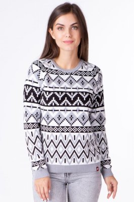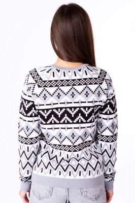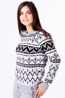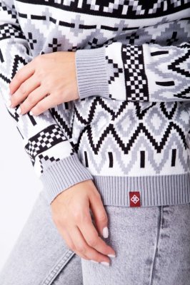 Категорія: Светри В’язаний светр з геометричними орнаментами – це виклик прохолодній порі року. Виріб вільного крою, із сірими манжетами та патентами у поєднанні із класичними кольорами візерунку (чорним, сірим та білим) зроблять нетиповим ваш щоденний образ. Теплий та приємний на дотик. Рекомендуємо поєднувати із чорними джинсами, класичними штанами та спідницею-міді.