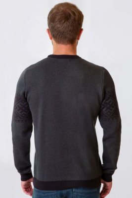 Чоловічий в'язаний светр з геометричним візерунком є комфортним щоденним вбранням. Зручний крій, якісна тканина, акуратна в'язка — це все характеризує чоловічий светр від "Фолк Моди". Орнамент, який розміщений на лінії грудей, плавно переходить на спину виробу. Його виконано чорними нитками на темно-сірій тканині. Чоловічий светр українського виробництва Вам обов'язково сподобаєтся та навіть стане улюбленим!