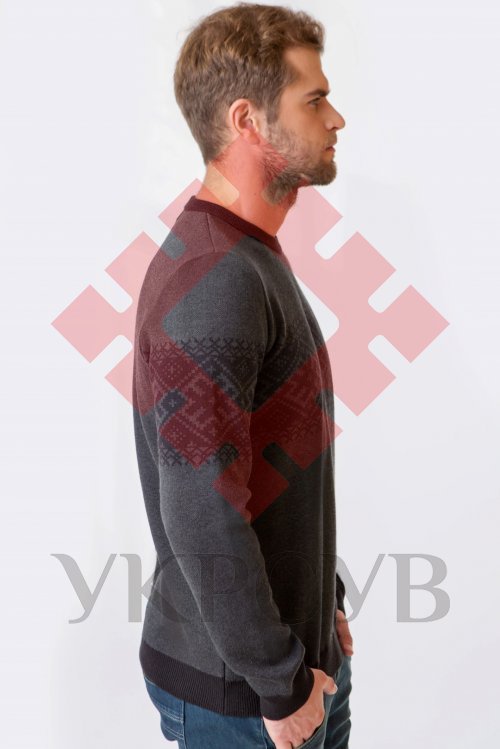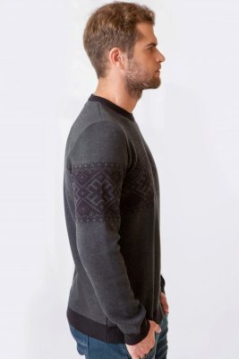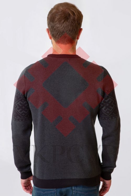 Категорія: Светри Чоловічий в'язаний светр з геометричним візерунком є комфортним щоденним вбранням. Зручний крій, якісна тканина, акуратна в'язка — це все характеризує чоловічий светр від "Фолк Моди". Орнамент, який розміщений на лінії грудей, плавно переходить на спину виробу. Його виконано чорними нитками на темно-сірій тканині. Чоловічий светр українського виробництва Вам обов'язково сподобаєтся та навіть стане улюбленим!