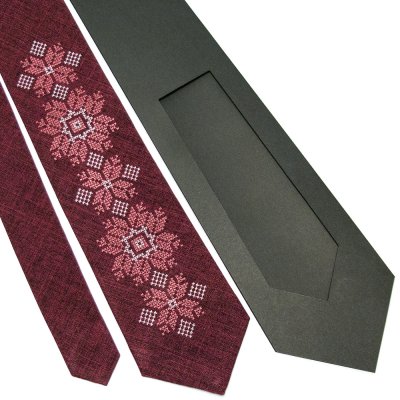 Модна вишита краватка №667 – це унікальний подарунок для боса, друга чи колеги по роботі. Вишита краватка – це необхідний аксесуар для ділової людини. Матеріал краватки – костюмна тканина бордового кольору, класичного крою. Довжина виробу – 150см. Усі вишиті краватки – запаковані в ексклюзивну упаковку ручної роботи. Чорна фірмова упаковка виготовлена з дизайнерського картону, добре тримає форму виробу при транспортуванні. Тому не важливо, хочете ви зробити оригінальний фольковий подарунок босу, другу чи самому собі – вишита краватка є правильним і вдалим варіантом.Категорія: Краватки Загальна інформація
