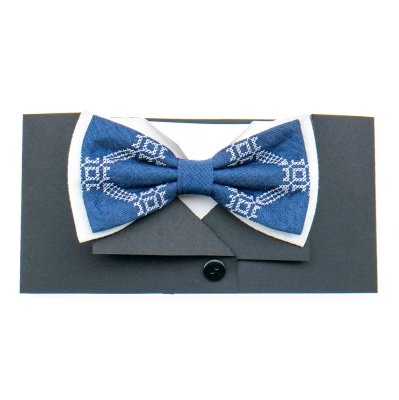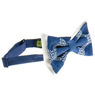 Вишитий метелик №824 виготовлений з з тканин двох видів: синього деніму і білої костюмної тканини. Такий метелик – це вишуканий аксесуар, тому буде оригінальним подарунком для близьких або знайомих на будь-яке свято. Одягається за допомогою застібки з регулюванням її довжини. Усі метелики – запаковані в ексклюзивну фірмову упаковку ручної роботи, виготовлену з чорного дизайнерського картону.Категорія: Метелики Загальна інформація