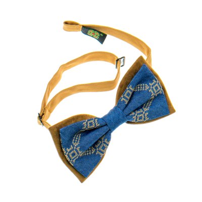 Вишитий метелик №825 виготовлений з з тканин двох видів: синього деніму і темно-синьої костюмної тканини. Такий метелик – це вишуканий аксесуар, тому буде оригінальним подарунком для близьких або знайомих на будь-яке свято. Одягається за допомогою застібки з регулюванням її довжини. Усі метелики – запаковані в ексклюзивну фірмову упаковку ручної роботи, виготовлену з чорного дизайнерського картону.Категорія: Метелики Загальна інформація