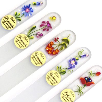 Скляні пилочки для нігтів, з розписом і кристалами Сваровські. Пилочки виготовлені з високоякісного загартованого богемського скла. P> Пилочки оцінені, як найбезпечніший і довговічний інструмент для манікюру. Вони, безсумнівно, зможуть задовільнити Ваші запити. P> Всі пилочки поставляються в оксамитовому чохлі. P>Довжина: 90 мм Загальна інформація / p>