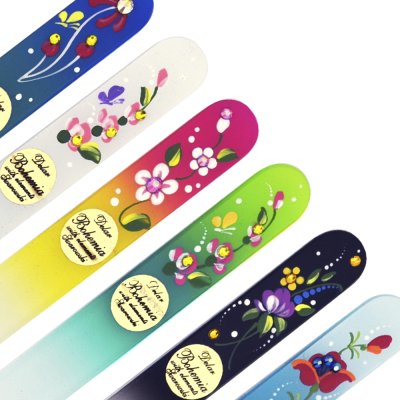 Скляні пилочки для нігтів, з розписом і кристалами Сваровські. Пилочки виготовлені з високоякісного загартованого богемського скла. P> Пилочки оцінені, як найбезпечніший і довговічний інструмент для манікюру. Вони, безсумнівно, зможуть задовільнити Ваші запити. P> Всі пилочки поставляються в оксамитовому чохлі. P>Довжина: 115 мм Загальна інформація / p>