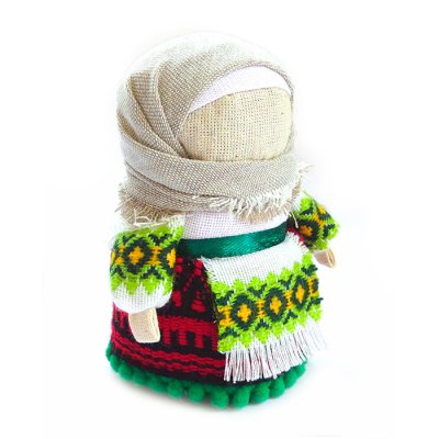Авторська лялька (ручна робота) Зернянка зелена — це оберіг добробуту родини. Маленька лялечка наповнена зерном гороху, яка символізує здорове майбутнє. Ручна вишивка