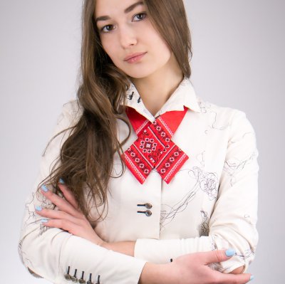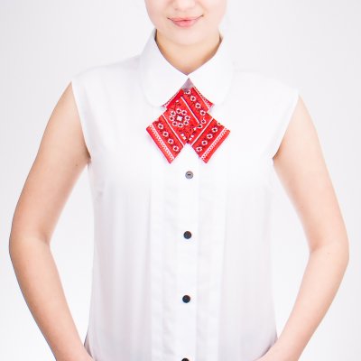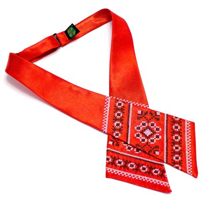 Крос-краватка або краватка-бант Мавка виготовлена з сатину, оздоблений стилізованою українською вишивкою. Декоративною особливістю виробу є стилізована вишивка, що розміщена по центру кроса (симетрично на обох деталях краватки). Краватка має застібку і регулятор, що дає змогу дуже швидкого і простого вдягання, тому аксесуар не потребує специфічних навичок зав'язування! Крос-краватка Мавка одинаково пасуватиме як під офісне вбрання на кожен день, так і на презентації або навіть вечірки.Категорія: Крос-краватки Загальна інформація
