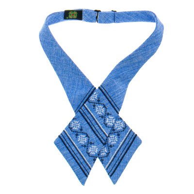 Вишита крос краватка №870 виготовлена з костюмної тканини волошкового кольору, оздоблена стилізованою українською вишивкою. Краватка має застібку і регулятор довжини для швидкого і простого вдягання. Вишита крос краватка №870 одинаково пасуватиме як під офісне вбрання на кожен день, так і на вечірках чи званих вечерях. Усі вишиті крос краватки нашого виробництва мають ексклюзивну упаковку, виготовлену з фірмового чорного дизайнерського картону.Категорія: Крос-краватки Загальна інформація