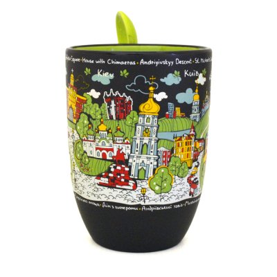 Чашка Київ - креатив, з ложкою, зелена, 330 мл (20383)