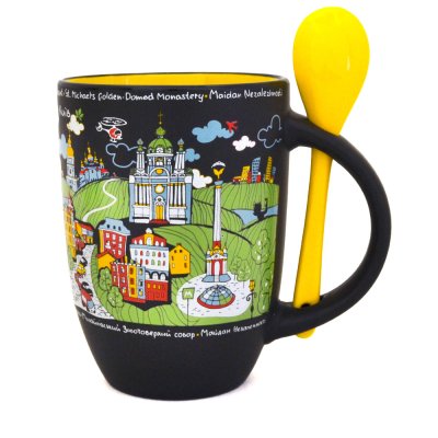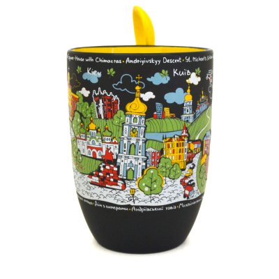 Чашка Київ - креатив, з ложкою, жовта, 330 мл (20382)