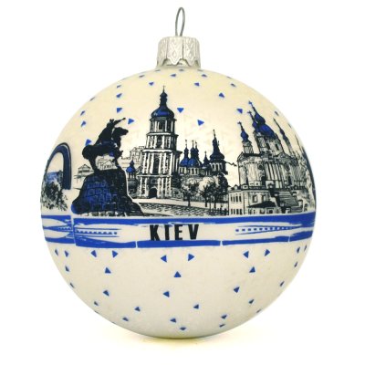 Ялинкова іграшка з видами Києва - стильний та приємний подарунок на Новорічні та Різдвяні свята для друзів, колег та гостей міста. Діаметр: 75мм Матеріал: склопластик