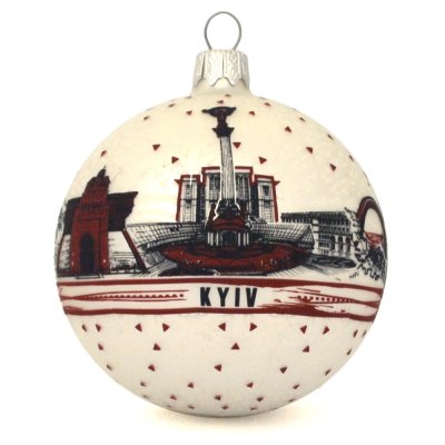 Ялинкова іграшка з видами Києва - стильний та приємний подарунок на Новорічні та Різдвяні свята для друзів, колег та гостей міста. Діаметр: 75мм Матеріал: склопластик