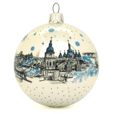 Ялинкова іграшка з видами Києва - стильний та приємний подарунок на Новорічні та Різдвяні свята для друзів, колег та гостей міста. Діаметр: 75мм Матеріал: склопластик