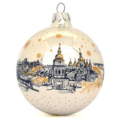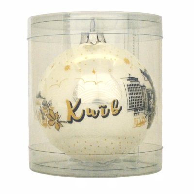 Ялинкова іграшка з видами Києва - стильний та приємний подарунок на Новорічні та Різдвяні свята для друзів, колег та гостей міста. Діаметр: 75мм Матеріал: склопластик