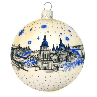 Ялинкова іграшка з видами Києва - стильний та приємний подарунок на Новорічні та Різдвяні свята для друзів, колег та гостей міста. Діаметр: 75мм Матеріал: склопластик