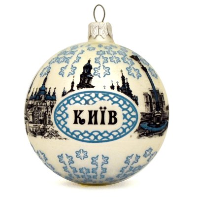 Ялинкова іграшка з видами Києва - стильний та приємний подарунок на Новорічні та Різдвяні свята для друзів, колег та гостей міста. Діаметр: 75мм Матеріал: склопластик