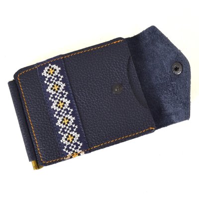 Зажим виконаний з натуральної шкіри та прикрашений лаконічною вишивкою у традиційному стилі. Такий зажим буде практичним, довговічним та зручним у використанні. З зовнішнього боку є відділ для монет. Всередині - окремий відділ для карток.