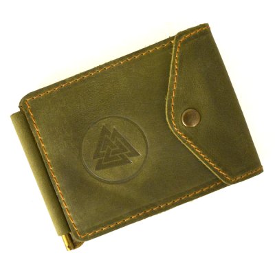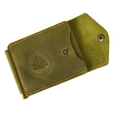 Цей оберіг допомагає людині пізнати всі таємниці світобудови і усвідомити власне призначення. Більш того, завдяки амулетові Валькнут можна розкрити в собі дар ясновидіння, розвинути свою інтуїцію і вміння мислити розумно і логічно. Завдяки цьому символу поліпшується пам'ять, людина знаходить вищу мудрість і отримує захист від усіх темних сил і від чаклунських чар. Такий зажим буде практичним, довговічним та зручним у використанні. З зовнішнього боку є відділ для монет. Всередині є окремий відділ для карток.Загальна інформація