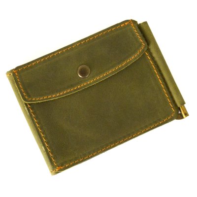 Зажим виконаний з натуральної шкіри з тисненням символу Валькнут.