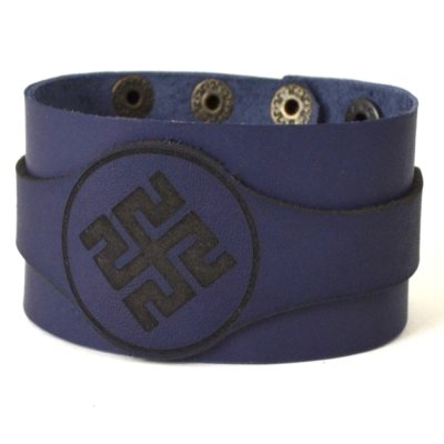 Браслет виконаний з натуральної шкіри, прикрашений символом Родовик, який виконаний технікою тиснення.