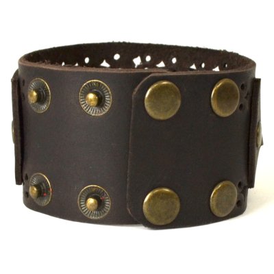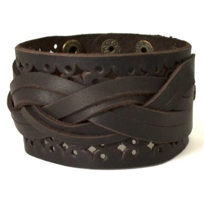 Браслет виконаний з натуральної шкіри, прикрашений плетенею косичкою та фігурною перфорацією.