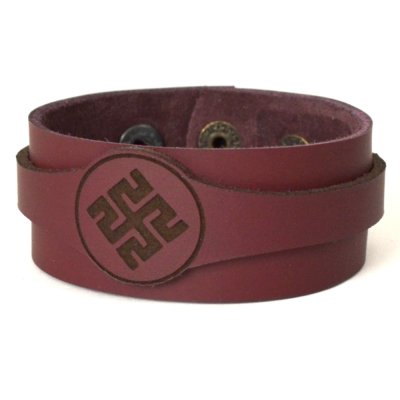 Браслет виконаний з натуральної шкіри, прикрашений символом Родовик, який виконаний технікою тиснення.