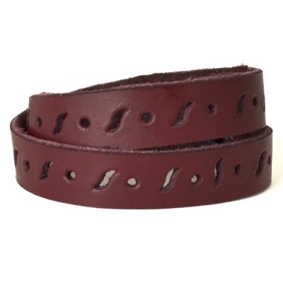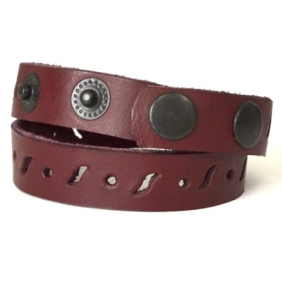 Браслет виконаний з натуральної шкіри, прикрашений фігурною перфорацією. Браслет має два обороти та 4 різні розміри, які регулюються за допомогою кнопок.