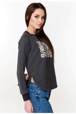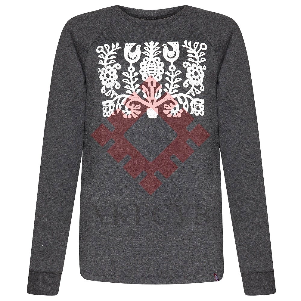 Жіночий світшот із вишивкою — musthave цього сезону. Візерунки гладдю ефектно виглядають на сірій меланжевій тканині. Виріб є стійким до прання, не втрачає первинні кольори. Цей базовий світшот чудово поєднується із джинсами, шкіряними штанами, лосинами, шортами тощо.