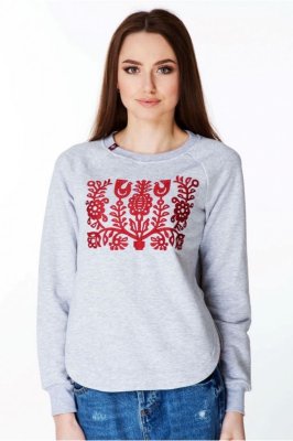 Категорія: Світшоти Жіночий світшот із бордовою вишивкою — musthave цього сезону. Бордові візерунки гладдю ефектно виглядають на сірій тканині. Виріб є стійким до прання, не втрачає первинні кольори. Цей базовий світшот чудово поєднується із джинсами, шкіряними штанами, лосинами, шортами тощо.