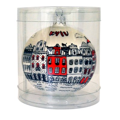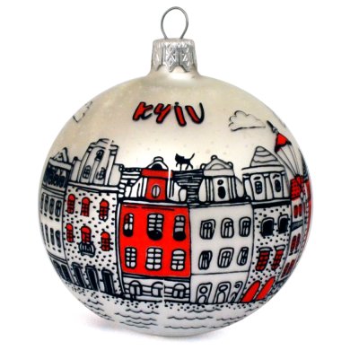 Ялинкова іграшка з видами Києва - стильний та приємний подарунок на Новорічні та Різдвяні свята для друзів, колег та гостей міста. Діаметр: 75мм Матеріал: склопластик