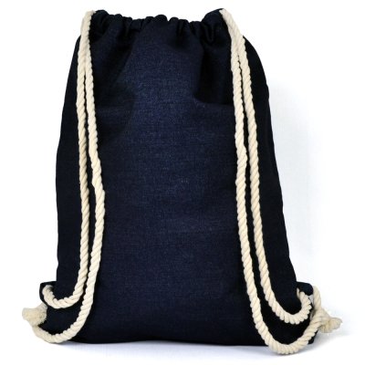 Стильний рюкзак-мішок із затягуванням та двома ручками-мотузками Одне основне відділення. Матеріал: 100% бавовна (джинс) із вставками тканини з червоним тканим візерунком (50% поліестер, 30% бавовна, 20% льон Розмір: ширина - 360 мм висота - 450 мм