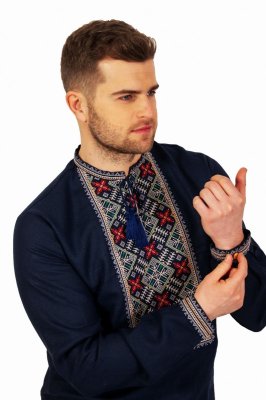 Чоловіча синя вишиванка поєднала в собі давні традиції, сучасні тенденції та комфорт.