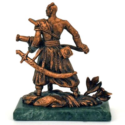 Матеріал: стутуетка - легкоплавкий сплав металів (цинк, олово та ін.), покриття - мідь. Постамент виготовлений з індійського мармуру.
