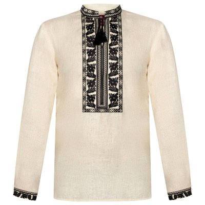 Ця вишукана чоловіча вишиванка кольору натурального льону виконана за мотивами борщівської вишивки. Дана модель сорочки багата на різноманітні деталі: незвична квіткова вишивка гладдю, дерев'яні гудзики на манжетах, зручні зав'язки-китиці. Щоб придбати цю вишиванку достатньо лише обрати потрібний розмір та оформити замовлення.