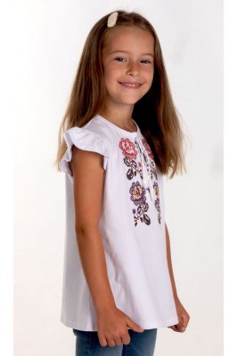 Дитяча вишита футболка буде красивим елементом гардеробу Вашої маленької красуні. Оригінальний квітковий візерунок виконаний хрестиком. Дитина почуватиметься у футболці комфортно, адже бавовняна тканина є приємною до тіла та дозволяє шкірі "дихати".Загальна інформація