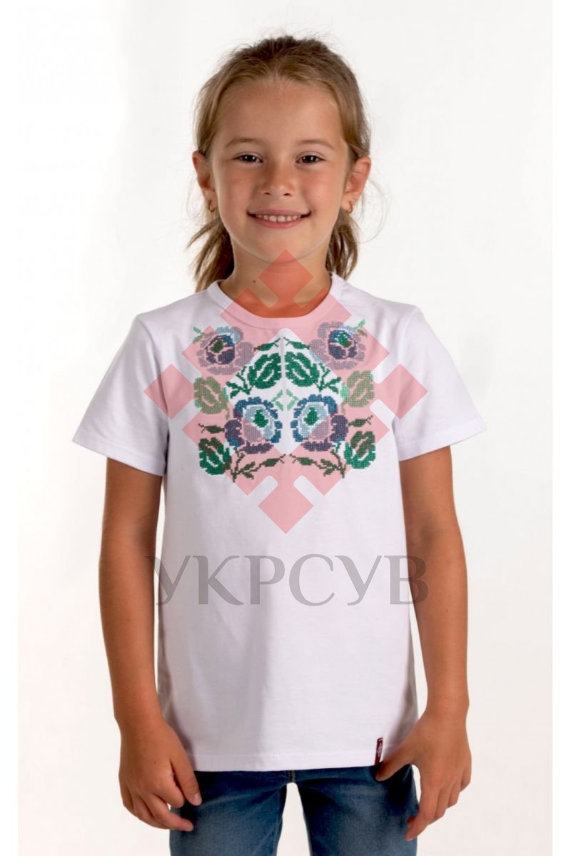 Дитяча вишита футболка буде красивим елементом гардеробу Вашої маленької красуні. Оригінальний квітковий візерунок виконаний хрестиком. Дитина почуватиметься у футболці комфортно, адже бавовняна тканина є приємною до тіла та дозволяє шкірі "дихати".Загальна інформація