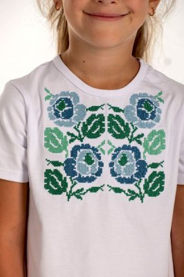 Дитяча вишита футболка буде красивим елементом гардеробу Вашої маленької красуні. Оригінальний квітковий візерунок виконаний хрестиком. Дитина почуватиметься у футболці комфортно, адже бавовняна тканина є приємною до тіла та дозволяє шкірі "дихати".Загальна інформація