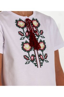 Дитяча вишита футболка буде красивим елементом гардеробу Вашої маленької красуні. Оригінальний квітковий візерунок виконаний хрестиком. Дитина почуватиметься у футболці комфортно, адже бавовняна тканина є приємною до тіла та дозволяє шкірі "дихати".Загальна інформація