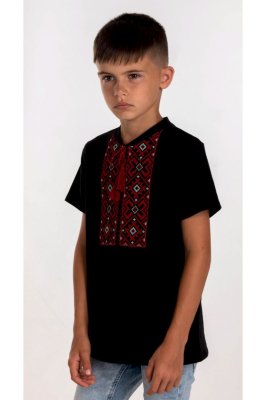 Дитяча футболка чорного кольору з українською вишивкою личитиме кожній дитині. Зручний крій, якісні, безпечні матеріали, акуратна вишивка Вас приємно здивує. Український орнамент виконаний хрестиком червоними нитками.Загальна інформація