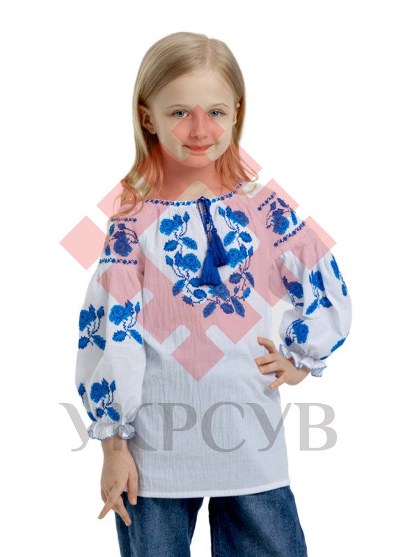 100% бавовна, блакитно-синя вишивка, рукав 3/4
