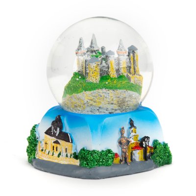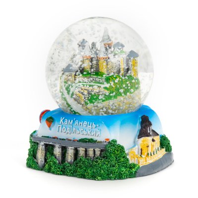 Скляна сніжна куля - традиційний подарунок. При струшуванні кулі піднімається штучний сніг, і куля всередині немов оживає. Розмір висота - 90 мм, ширина - 65 мм , діаметр кулі - 65 мм